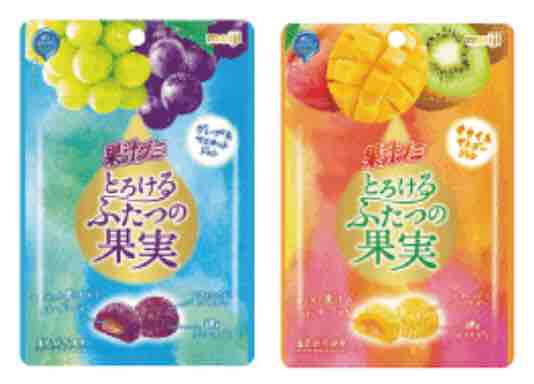 2.明治 果汁グミ とろけるふたつの果実 グレープ&マスカットジュレ/キウイ&マンゴージュレ各52g各119円(税込各129円)。ポイント60Pと交換できる。実質69円引き。53%OFF相当。先着合計17,000個。