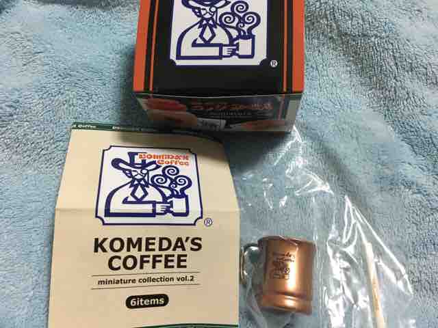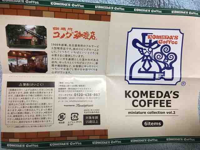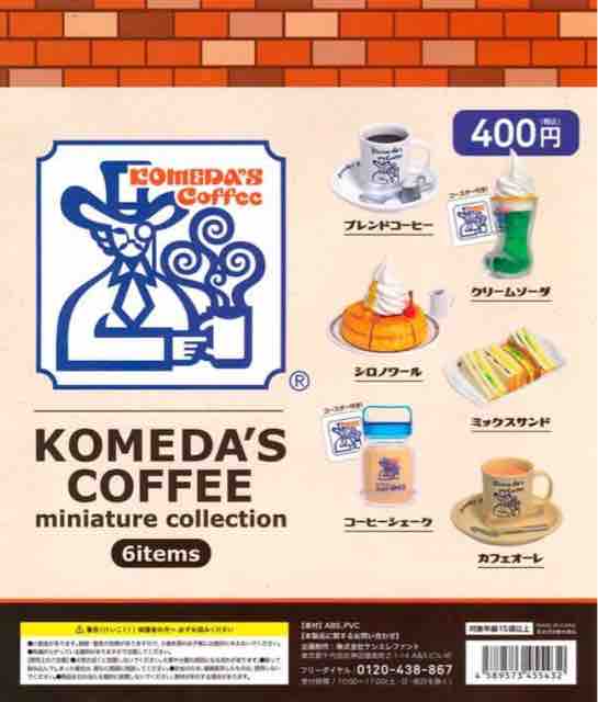 ミニ玩具が出てくるカプセル自動販売機のガチャガチャで、珈琲所コメダ珈琲店ミニチュアコレクションvol.2全6種が登場している。メーカー希望小売価格は各400円で、ケンエレファントの玩具となる。対象年齢は15才以上。