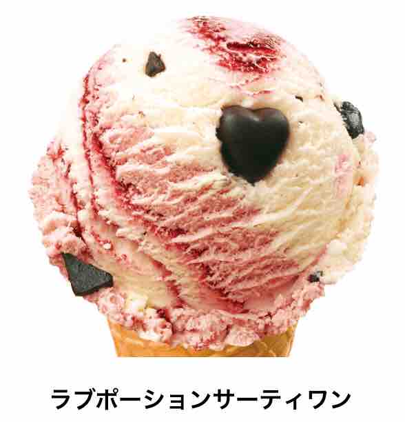 ラブポーションサーティワンも人気のあるフレーバーだ。恋の媚薬とも言われるアイスクリーム。ラズベリーとホワイトチョコのアイスに魅惑的な味わいにハートのチョコレートを加えている。このハートのチョコレートの中にもラズベリーソースが入っていて、食べたときにまたラズベリーが弾けて美味しい。