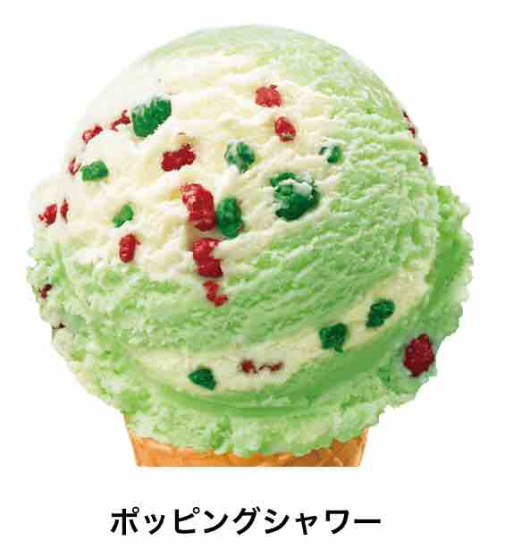 ポッピングシャワーは人気No.1フレーバーだ。ポップロックキャンディが弾ける、ミントとチョコ風味のフレーバー。キャンディが弾けるというのは、食べると口の中でパチパチと弾けたような感覚を味わうことができて楽しめるからだ。人気フレーバーなのでアイスクリームケーキにもよく使われる。
