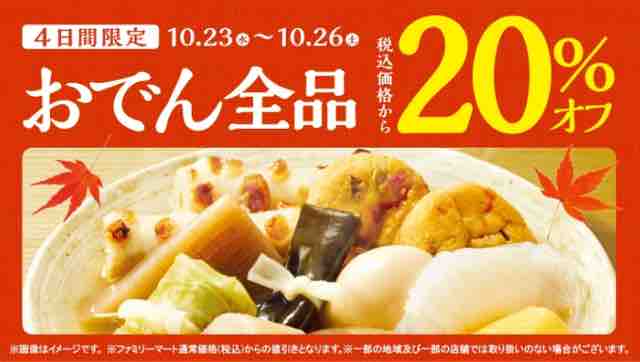 ・ファミマでおでん発売開始を記念して全品20%OFF!