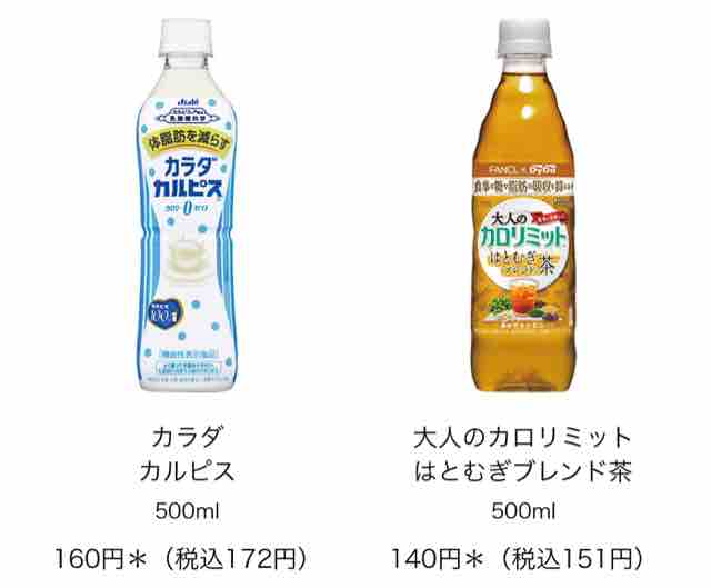 ・カラダカルピス500ml160円(税込172円)