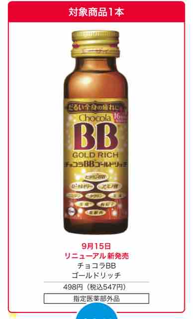 ・9月15日リニューアル新発売チョコラBBゴールドリッチ498円(税込547円)