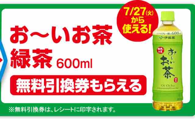 ・伊藤園お~いお茶600mlの無料引換券がもらえる