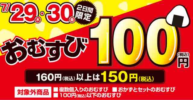 コンビニエンスストアのファミリーマートで、2日間限定のおむすびセールが始まった。160円(税込)未満のおむすびは100円(税込)、160円(税込)以上のおむすびは150円(税込)の特別価格になる。