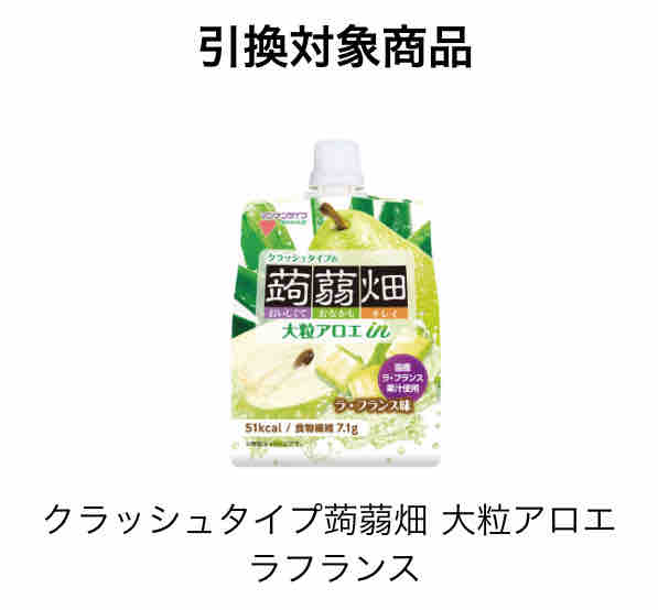 ・セブンイレブンでクラッシュタイプ蒟蒻畑大粒アロエラフランス無料引換券がもらえる
