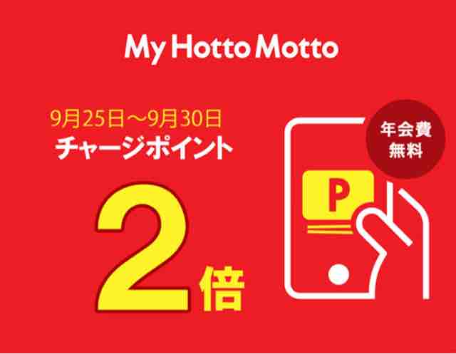 ほっともっとのチャージポイントが2倍もらえるキャンペーンは毎月25日~月末の期間で実施されるのが恒例になっている。My Hotto Mottoの会員になればチャージできる。年会費無料なのでおススメしたい。これまでチャージポイント5倍キャンペーンも実施されたことがあるが、2倍でもお得である。