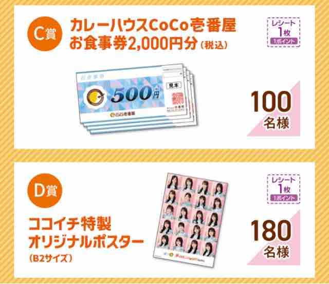 ココイチと日向坂46のコラボキャンペーンでは、メンバーのオリジナルコースターがもらえるキャンペーンの他、レシートを撮影の上で、応募して豪華賞品が当たるキャンペーンも実施する。