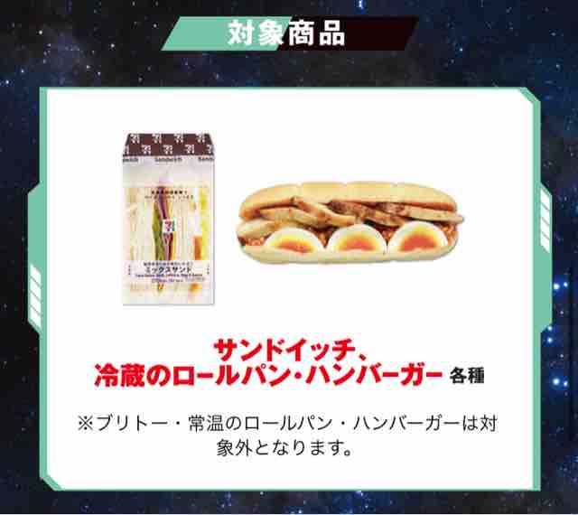 セブンイレブンで始まった対象のサンドイッチ、冷蔵のロールパン、ハンバーガーを買って機動戦士ガンダムのアーセナルベースカードがもらえるキャンペーン。機動戦士ガンダム水星の魔女放送記念でキャンペーンは実施されることになった。