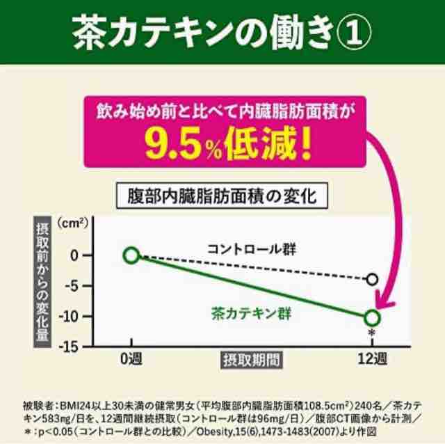 この飲料は特定保健用食品。内臓脂肪を減らすのを助ける緑茶飲料。家庭で淹れた濃いお茶に近い、緑茶葉の濃く深い味わいが楽しめる。