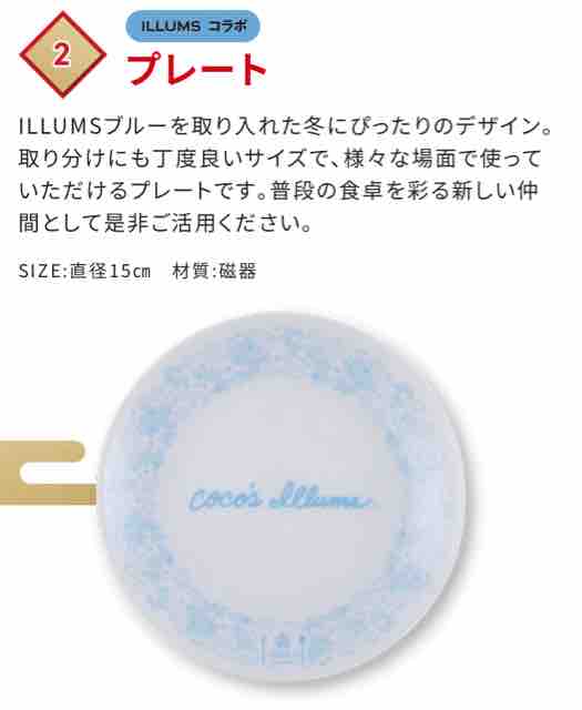 福袋のコンセプトは少し贅沢な心地の良い生活。シンプル×ナチュラルをキーワードに自分らしい暮らしの楽しみ方を発信しているILLUMS(イルムス)とコラボしたオリジナルグッズと食事券3,500円のココス福袋の中身は以下の通り。