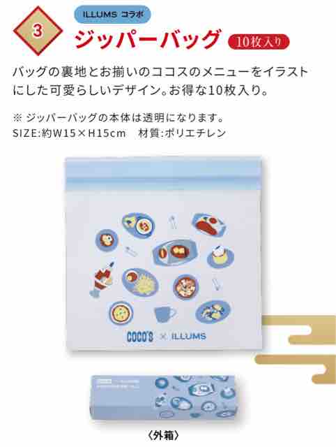 やはり福袋はこれくらいお得な内容が良い。ILLUMSコラボグッズがこれだけ入っているため、グッズが欲しくてココスで食事もする方であれば福袋を買っても良いのでは。