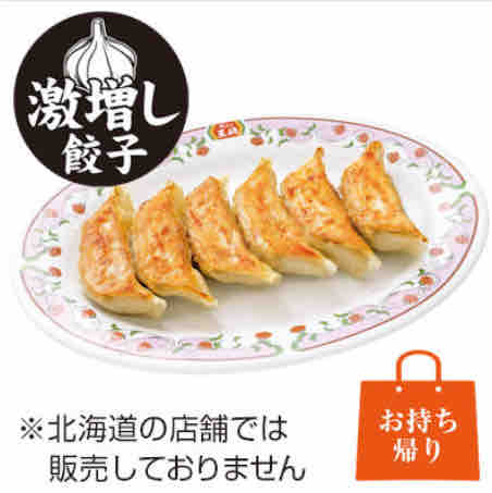 同じ餃子を注文して1人分が無料になるが、餃子の種類は通常の餃子、にんにく激増し餃子、にんにくゼロ生姜餃子がある。