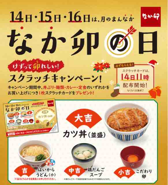 今回は12月なか卯の日スクラッチキャンペーンを紹介していきたい。