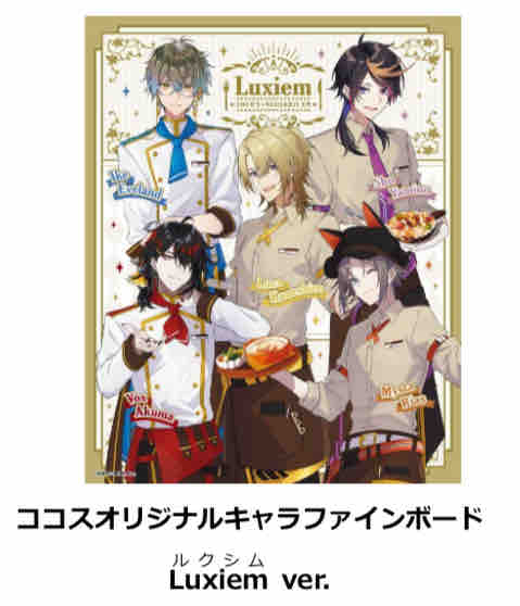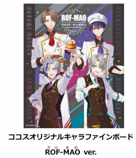 限定グッズは「ココスオリジナルキャラファインボード Luxiemルクシムver.」と「ココスオリジナルキャラファインボード ROF-MAOろふまおver.」となる。対象メニュー1品の注文で抽選でき、各230名に当たる。