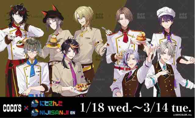 ファミリーレストランのココスと「にじさんじ」のコラボキャンペーンが始まった。にじさんじのキャラクターたちがココスに大集合して様々なキャンペーンを実施する。