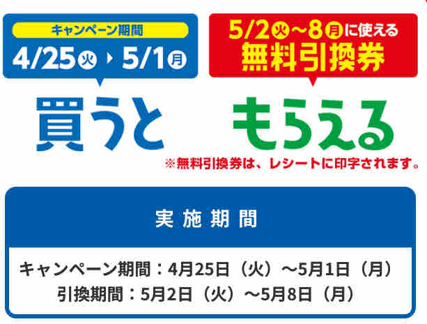 週替わり対象商品の無料引換券をもらおう