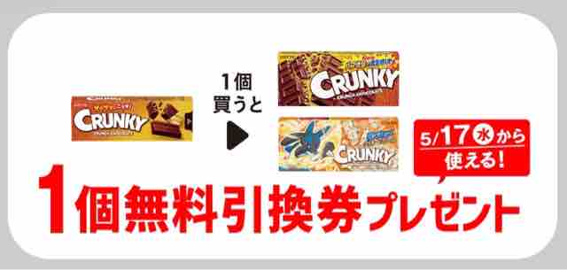 コンビニエンスストアのセブンイレブンで、対象の「ロッテ クランキー スリムパック」を1個買うと、「ロッテ クランキー」「クランキー クッキー&クリーム ポケモン」どちらか1個の無料引換券が、レシートクーポンで必ずもらえるキャンペーンが始まっている。