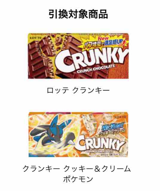 ・無料引換券は「ロッテ クランキー」「クランキー クッキー&クリーム ポケモン」