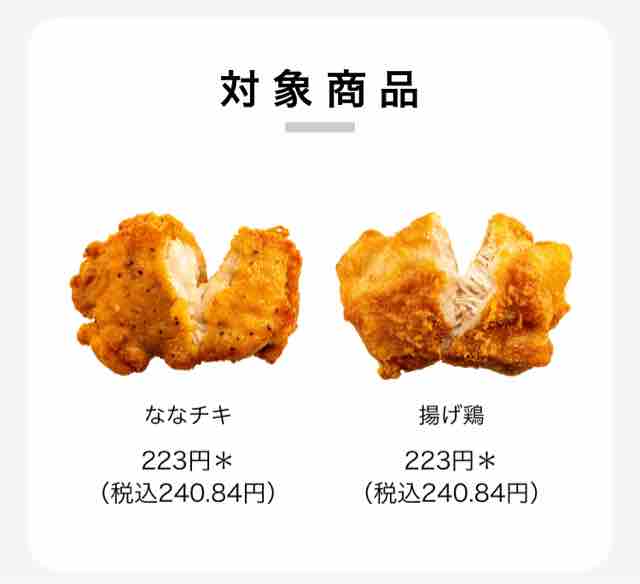 ・ななチキ、揚げ鶏が対象
