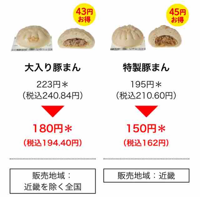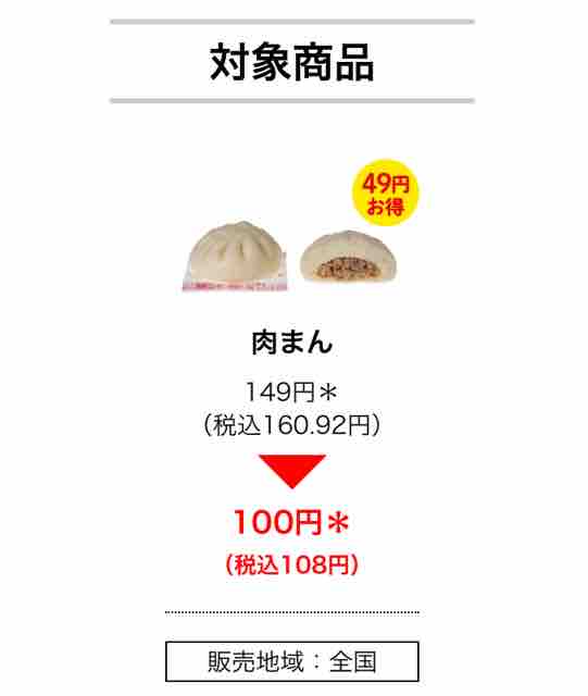 ・肉まん 149円(税込160.92円)→100円(税込108円) 49円お得