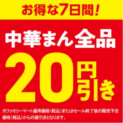 ・ファミマで中華まん全品20円引き