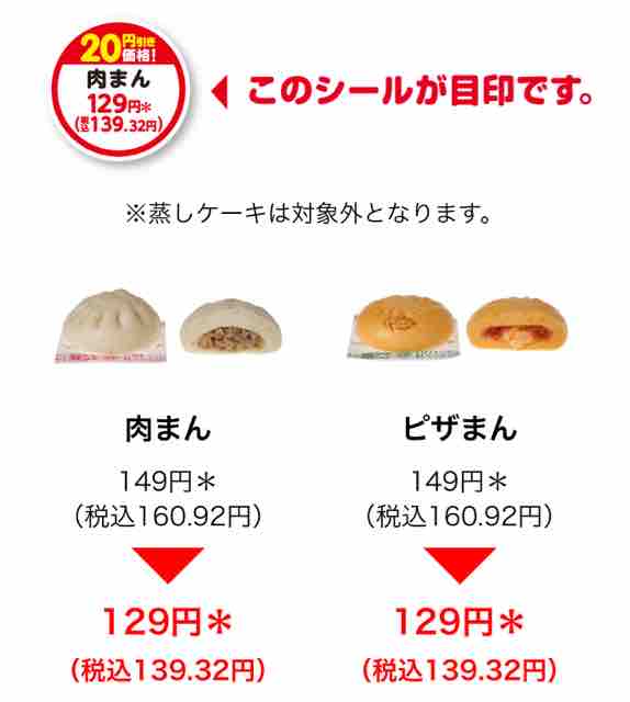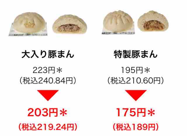 ・肉まん 149円(税込160.92円)→129円(税込139.32円)