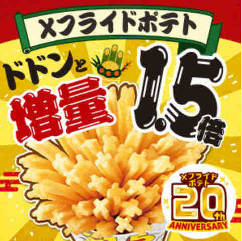 Xフライドポテトは通常サイズのカロリーは316kcal。キャンペーン中は1.5倍に増量されるため、カロリーは474kcalとなる。価格は変わらない。