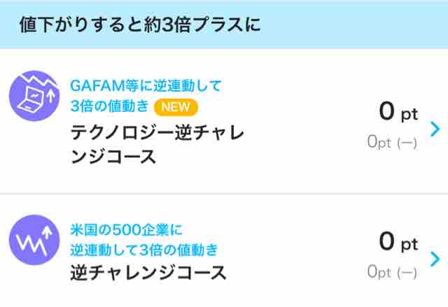この結果を見て分かる通り、連動して3倍の値動きはチャンスもあるがリスクも大きい。逆連動にはポイント運用していない。トータルで見るとかなり+50%以上の運用成績なのでかなり良い。