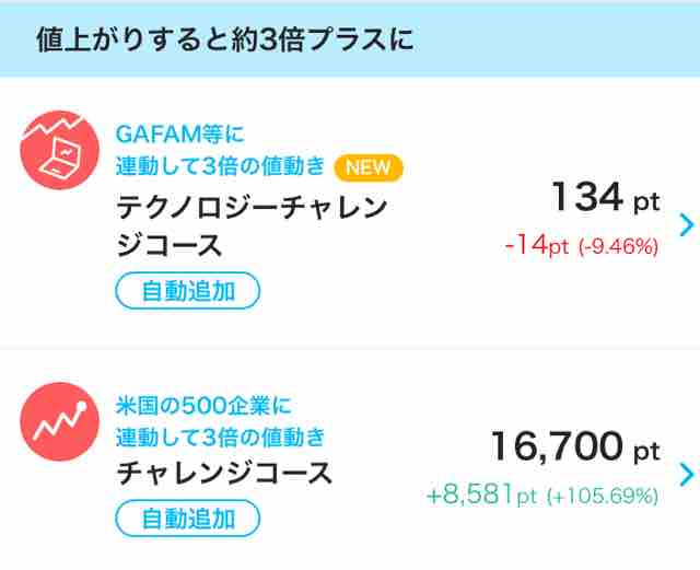 このPayPayポイント運用は色々なコースがあり、たとえば米国の500企業で運用すると、対象の米国500企業の株価に連動してポイントが変動するため、米国500企業の株価が上がればどんどんポイントも増えていくし、逆につい先日の大幅な株価値下がりがあると同様にポイントも大幅に下がる。リスクもあるわけだ。