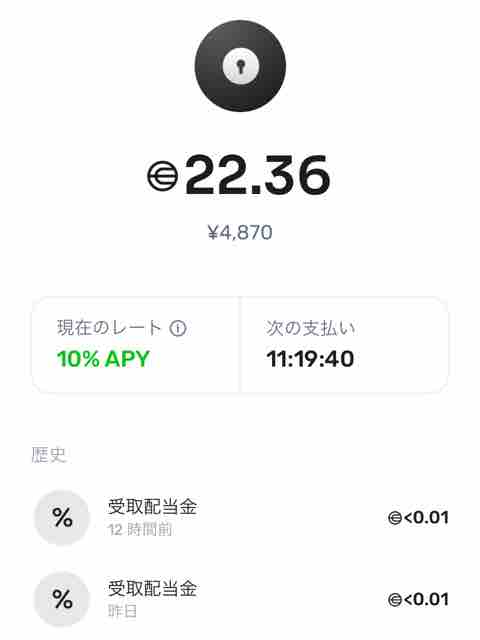 また保有しているワールドコインはヴォールトという貸付をすることができ、1日に1回配当金を受け取ることができる。少額でも貸付ができ、毎日少しずつでもワールドコインが増えていくのが嬉しい。