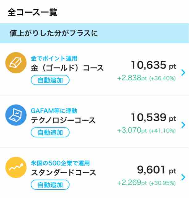 ポイント運用のコース振り分けは以下の通り。