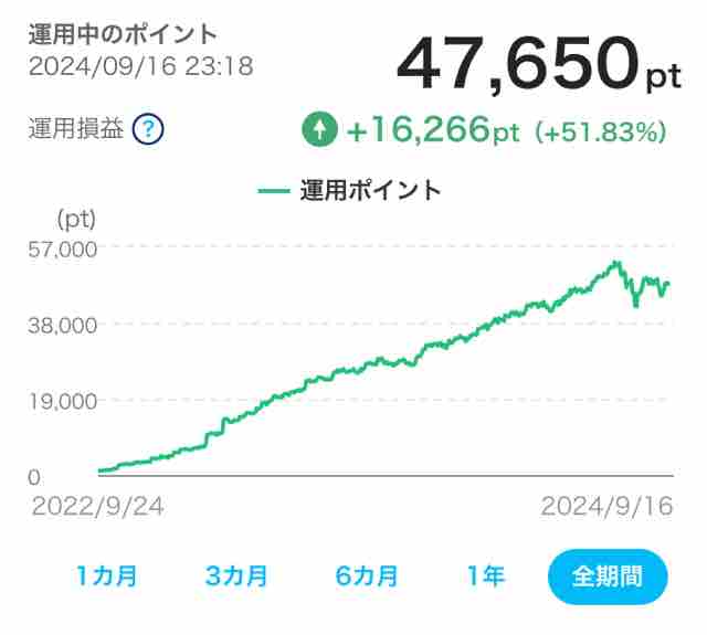 ここ1か月で獲得したポイントもあるが、運用成績が悪いため1,000ptくらい下がっている。