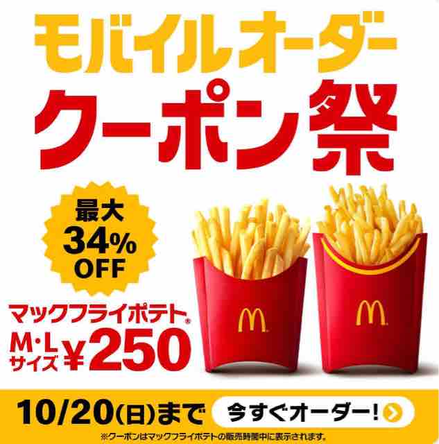 今回はマクドナルドのモバイルオーダークーポン祭でマックフライポテトM・Lサイズ250円になるキャンペーンを紹介した。気になる方はマクドナルドへ行ってみてはいかがでしょうか。