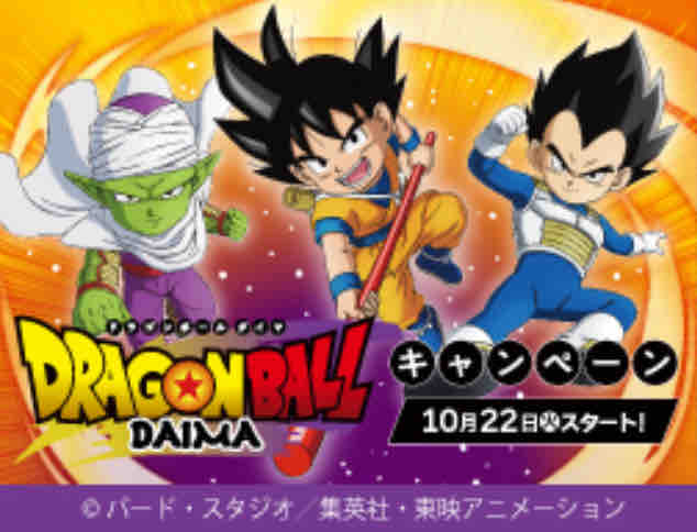 ドラゴンボールDAIMA(ダイマ)は、鳥山明原作のドラゴンボール完全新作シリーズ。ドラゴンボールの40周年を記念したアニメで登場キャラクターが小さな姿にされる。フジテレビで毎週金曜23:40に放送中。アニメ放送に合わせてローソンでドラゴンボールのお馴染みのミニキャラクターが、クリアファイルに描かれてプレゼントされるキャンペーンとして、実施することになった。