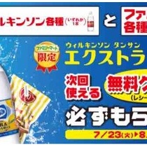 コンビニエンスストアのファミリーマートで、対象のウィルキンソンを含む税込700円以上の購入で、ファミリーマート限定のウィルキンソンタンサンエクストラレモンの1本無料引換券がもらえる。クーポン発券期間:2019年5月14日(火)~5月20日(月)クーポン引換期間:2019年5月14 ...