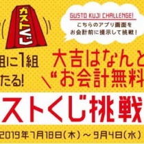 【キャンペーン速報】ガストくじ5組に1組に当たる!大吉は会計無料or小吉は会計10%OFF!2019年9/4(水)まで