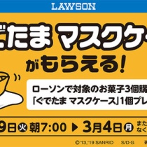 ローソンでキャンペーン期間中に対象商品のお菓子を3個購入すると、先着数量限定でサンリオキャラクターのぐでたまマスクケース全3種のうち、1個がプレゼントされる。キャンペーン期間は2019年2月19日(火)~3月4日(月)となる。今の時期は風邪予防でマスクをするし、これから ...
