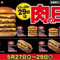 ハンバーガーチェーン店のロッテリアで、毎月27日~29日に実施している肉(ニク)の日を5月も実施し、ボリューム満点のハンバーガーをお得な価格で提供する。27日~29日に4-dan絶品チーズバーガーを含めたボリュームバーガーがお得に食べることができる肉の日を実施する。キャ ...