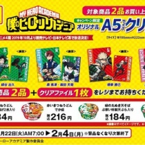 ファミリーマートで僕のヒーローアカデミアのオリジナルA5サイズクリアファイル全4種のプレゼントキャンペーンが始まる。キャンペーン期間は2019年1月22日(火)7:00~2月4日(月)で赤いきつね、緑のたぬきの対象商品2品購入でクリアファイル1枚をもらうことができる。今回はフ ...