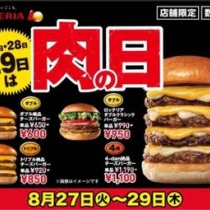 【キャンペーン速報】ロッテリアで9月の3連休も肉の日を実施!お得なボリュームバーガーを食べよう!2019年9/14(土)~