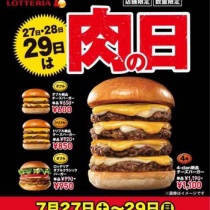ハンバーガーチェーン店のロッテリアで、29肉(ニク)の日を毎月27日~29日に実施し、ボリューム満点のハンバーガーをお得な価格で提供する。今月も前回に引き続き、4-dan絶品チーズバーガーが登場する。キャンペーン期間:2019年7月27日(土)~29日(月)の3日間4-dan絶品チーズ ...