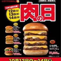 【キャンペーン速報】ロッテリアは肉の日が大好き!3連休はボリュームバーガーを食べよう!2019年10/14(月)まで